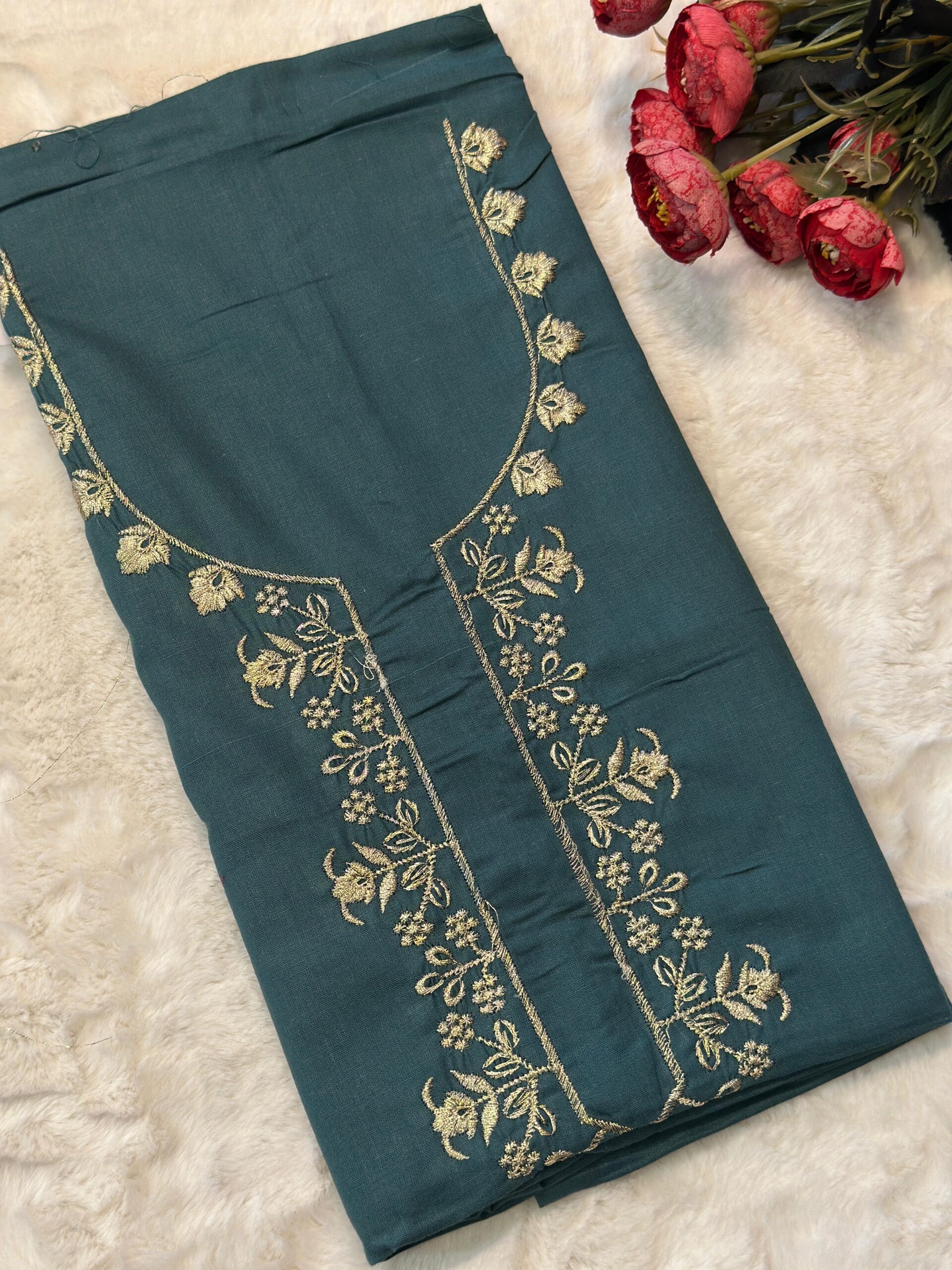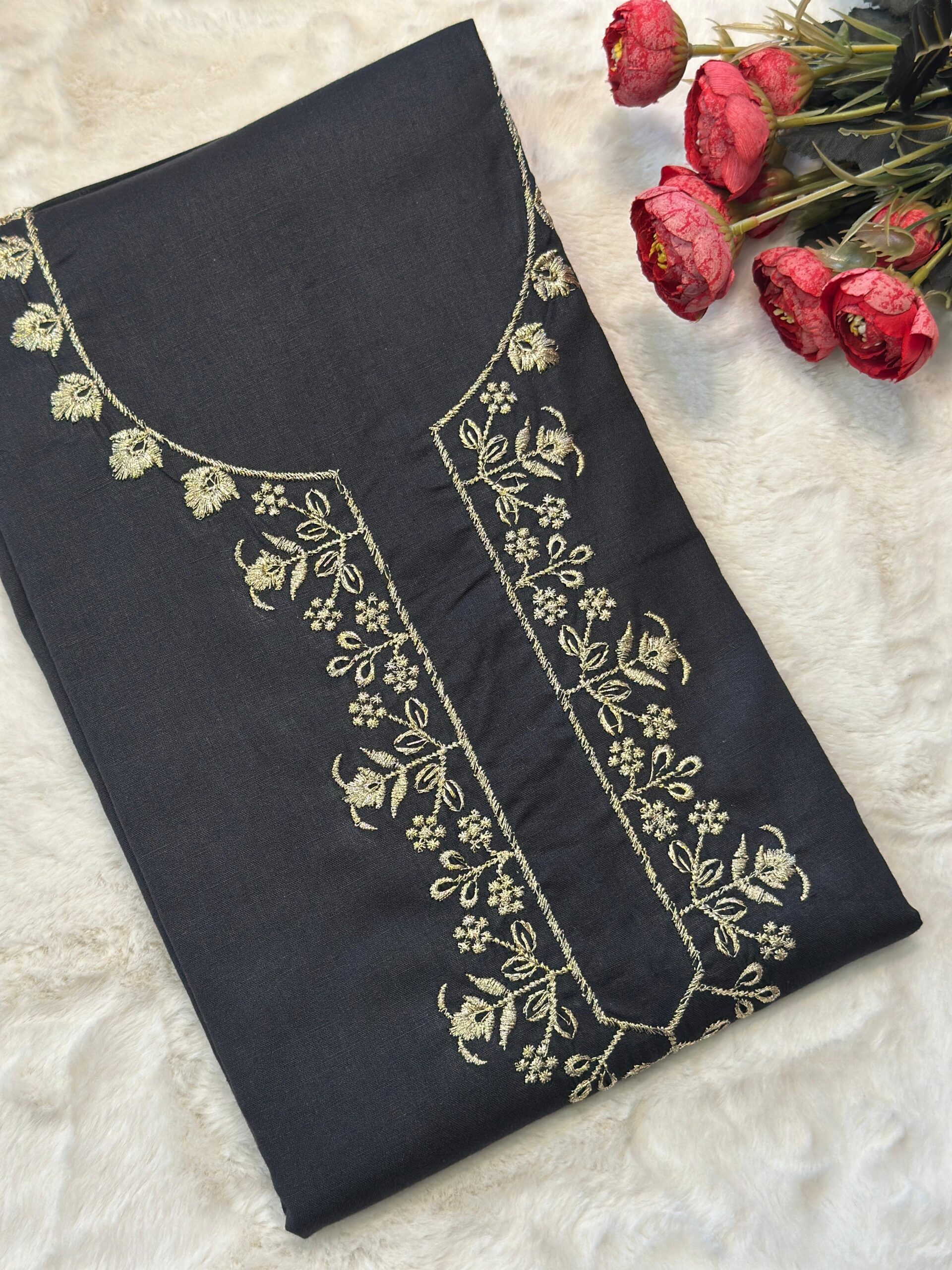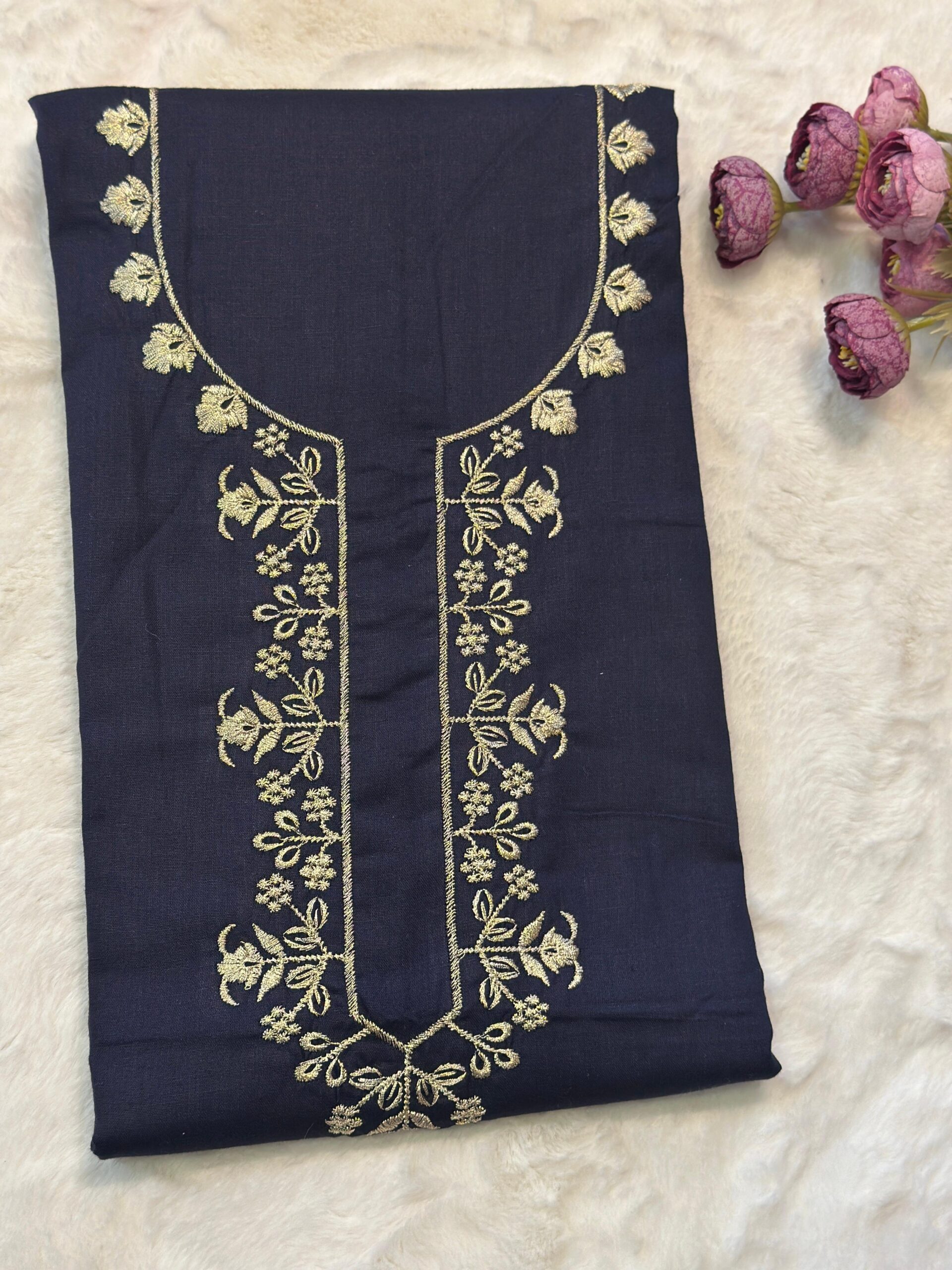 Golden Embroidered Neck Nighty Material-Premium Fabric